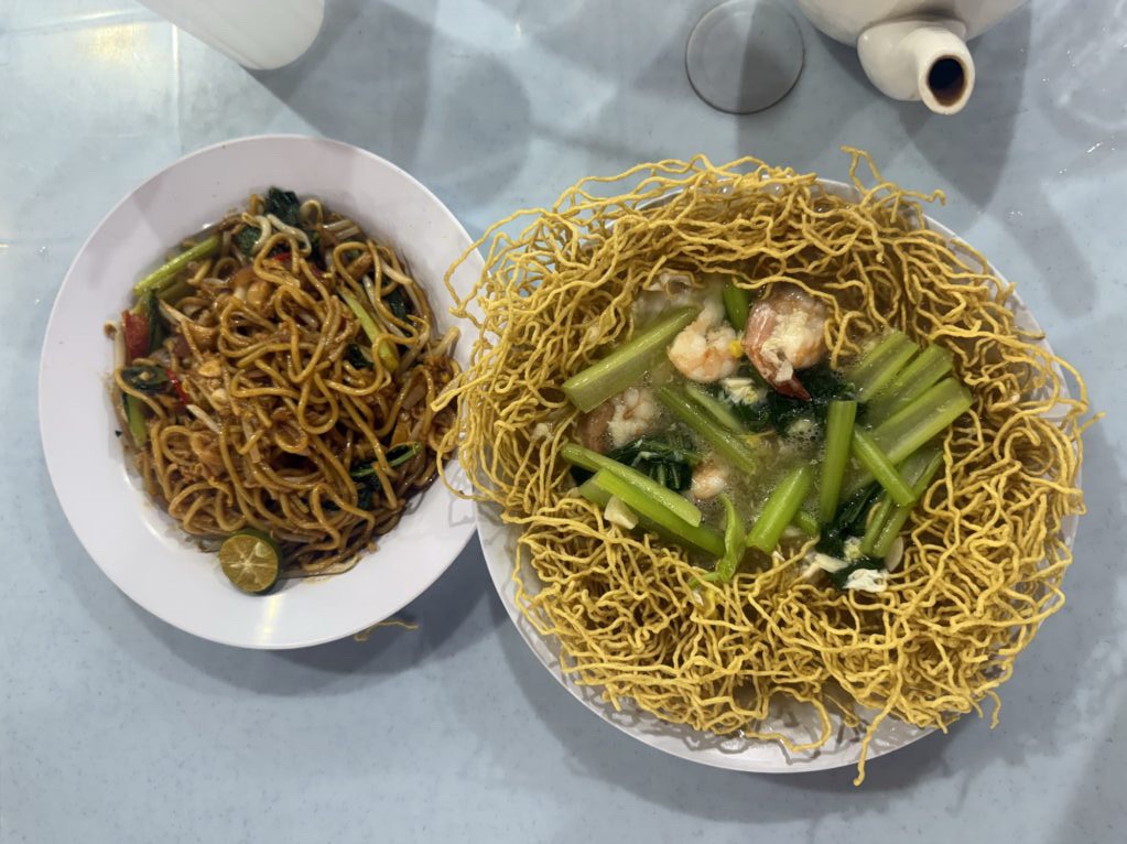 ワタシはというと、大好物の淡水エビ入りかた焼きそば(右)をチョイス。