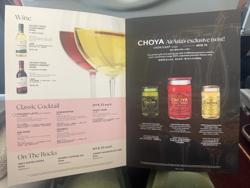 ちなみにシートポケットにあった有料の機内食案内はこんな感じ。