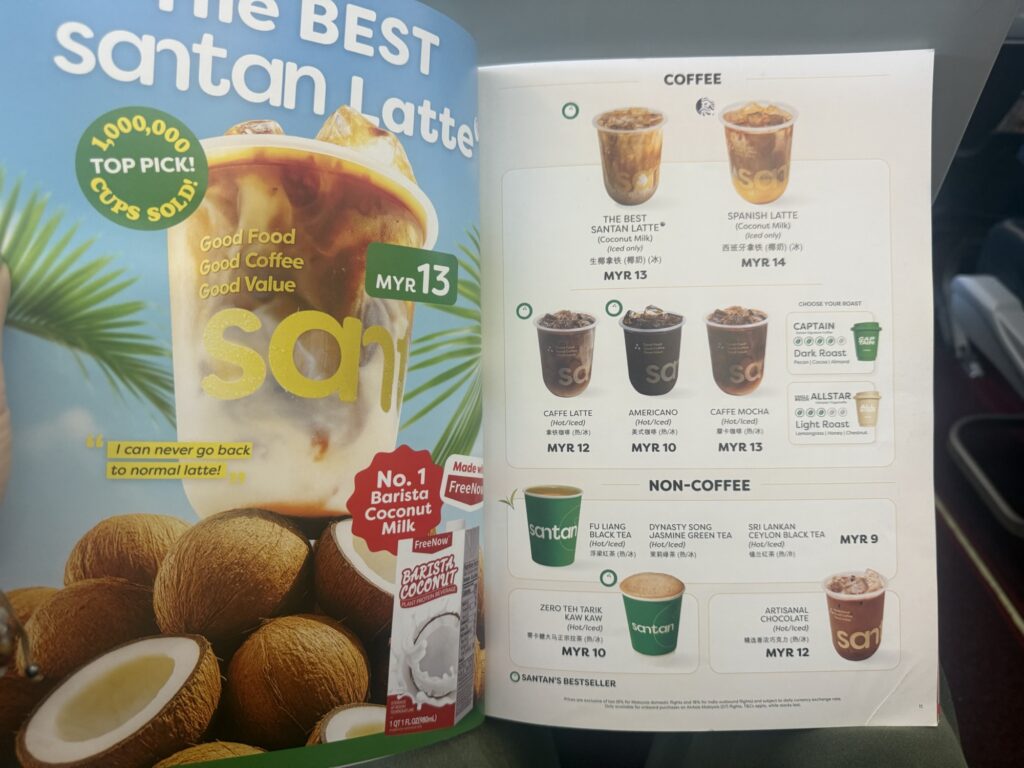 ワタシは出国エリアで買った水を持ち込んでいたけど、温かい飲み物が欲しくなってホットラテを頼んだよ。