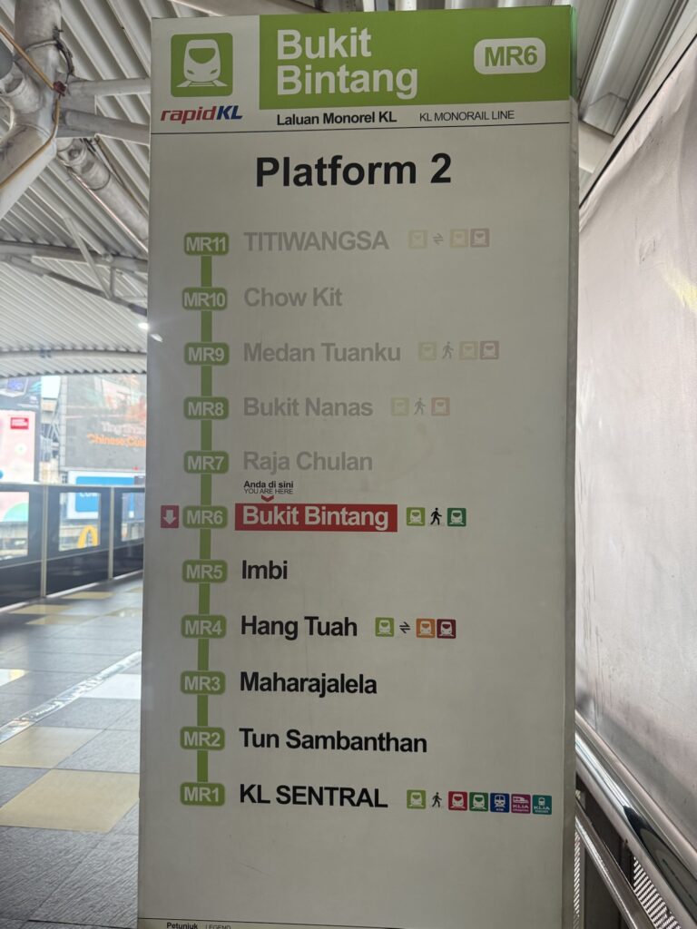 MRTのBukit Bintang駅から乗って、まずはKLセントラル駅へ向かいます。