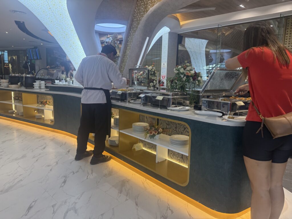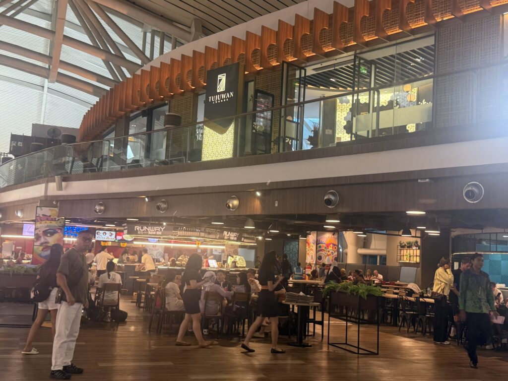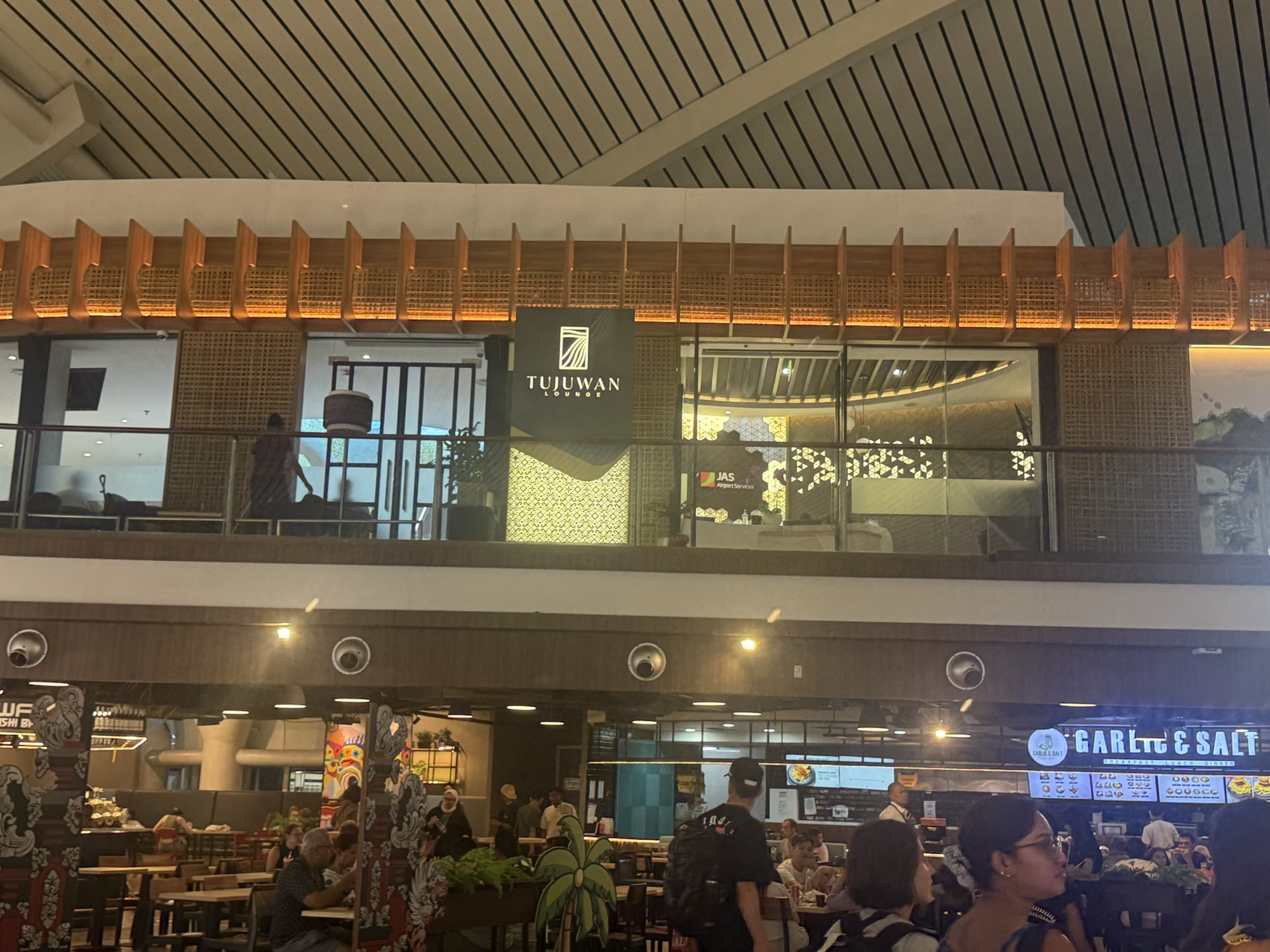 デンパサール、ングラライ国際空港のラウンジはフードコート風レストランの上にあります。