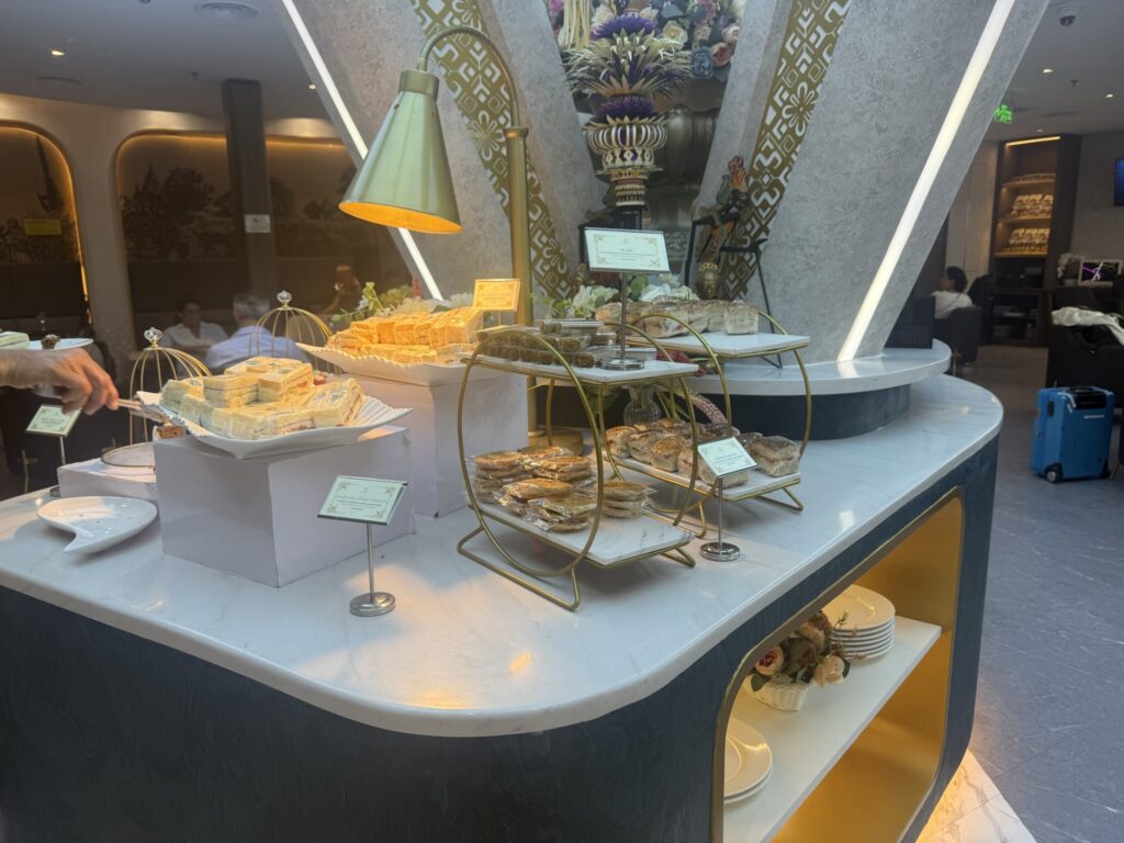 ナシゴレンやミーゴレン、ソトアヤムなどの温かい料理やサラダがあって、サンドイッチやスイーツも。
